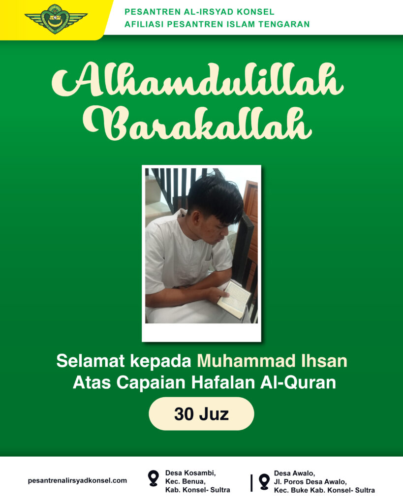 - Muhammad Ihsan: Berhasil menyelesaikan hafalan 30 Juz.